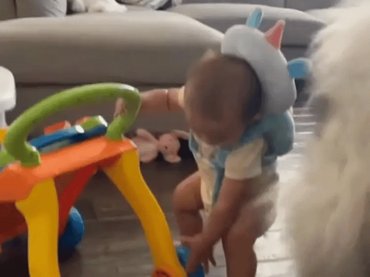 Podczas pierwszych prób chodzenia upadki do tyłu są nieuniknione.
